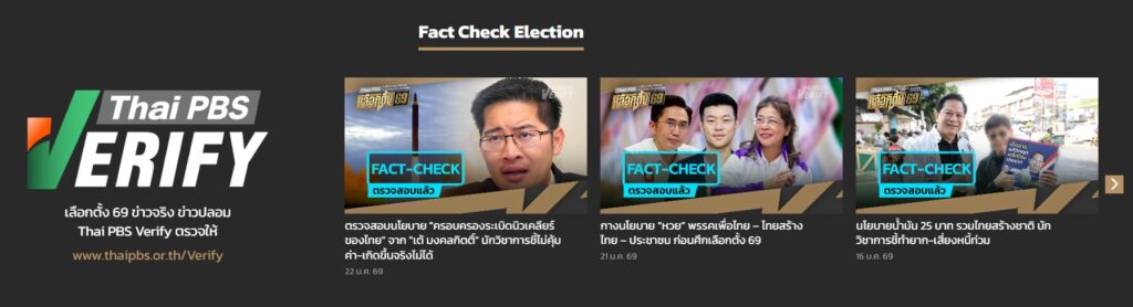 คุณกนกพร ประสิทธิ์ผล ผู้อำนวยการสำนักสื่อดิจิทัล ไทยพีบีเอส (Thai PBS Verify) กล่าวถึงความสำคัญของการตรวจสอบข่าวปลอมว่า “ช่วงเลือกตั้งเป็นช่วงที่ประชาชนต้องการข้อมูลเป็นจำนวนมาก และเป็นช่วงที่ข่าวสารเกี่ยวกับพรรคการเมืองต่าง ๆ ไม่ว่าจะเป็นนโยบายของพรรคการเมือง หรือแคนดิเดตของพรรคการเมืองนั้น ๆ เผยแพร่ออกมามากมาย ซึ่งทำให้เกิดปริมาณข่าวปลอมและข้อมูลบิดเบือนค่อนข้างมาก ความท้าทายของการตรวจสอบข้อมูลในช่วงเลือกตั้ง คือ ข่าวจำนวนมากไม่ได้ผิด 100% ทั้งหมดหรือถูกต้อง 100% ทั้งหมด แต่จะมีกลไกการใช้ภาษาและการเลือกประเด็น เพื่อสร้างความเข้าใจคลาดเคลื่อน โดยเฉพาะข่าวที่แฝงด้วยเจตนาไม่ดี มุ่งทำลายชื่อเสียงฝั่งตรงข้าม หรือนำข้อมูลเก่ามาใช้โจมตีทางการเมือง ทีมงาน Thai PBS Verify จึงต้องใช้ความรอบคอบและทักษะในการตรวจสอบมากเป็นพิเศษ ในช่วงเวลานี้ การรับข่าวสารของประชาชนจึงจำเป็นต้องตั้งสติ อ่านอย่างละเอียด และตรวจสอบข้อมูลจากแหล่งที่น่าเชื่อถือ เพื่อให้การตัดสินใจทางการเมืองตั้งอยู่บนข้อเท็จจริงที่ถูกต้องและตรวจสอบได้”