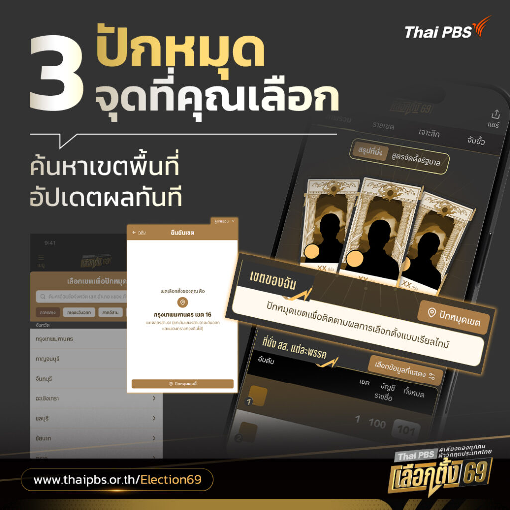 3.ปักหมุดเช็กผลคะแนนเลือกตั้ง เฉพาะพื้นที่ ที่คุณต้องการไม่พลาดทุกความเคลื่อนไหวเกาะติดพื้นที่แข่งขันเดือด บ้านใหญ่ ช้างชนช้าง จุดยุทธศาสตร์