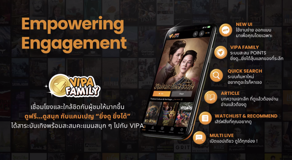 ดังนั้น VIPA Family จึงนับเป็นอีกก้าวสำคัญที่อยากให้ทุกคนได้เห็นถึงความมุ่งมั่นในการพัฒนาแพลตฟอร์มอย่างต่อเนื่อง ให้ผู้ชมไม่ได้เป็นเพียงผู้เสพคอนเทนต์ แต่สามารถมีส่วนร่วมผ่าน Gamification ควบคู่กับการส่งตรงคอนเทนต์พรีเมียมที่หาดูได้ยาก ทั้งสารคดีต่างประเทศและซีรีส์คุณภาพตลอดปี 2569 นี้”