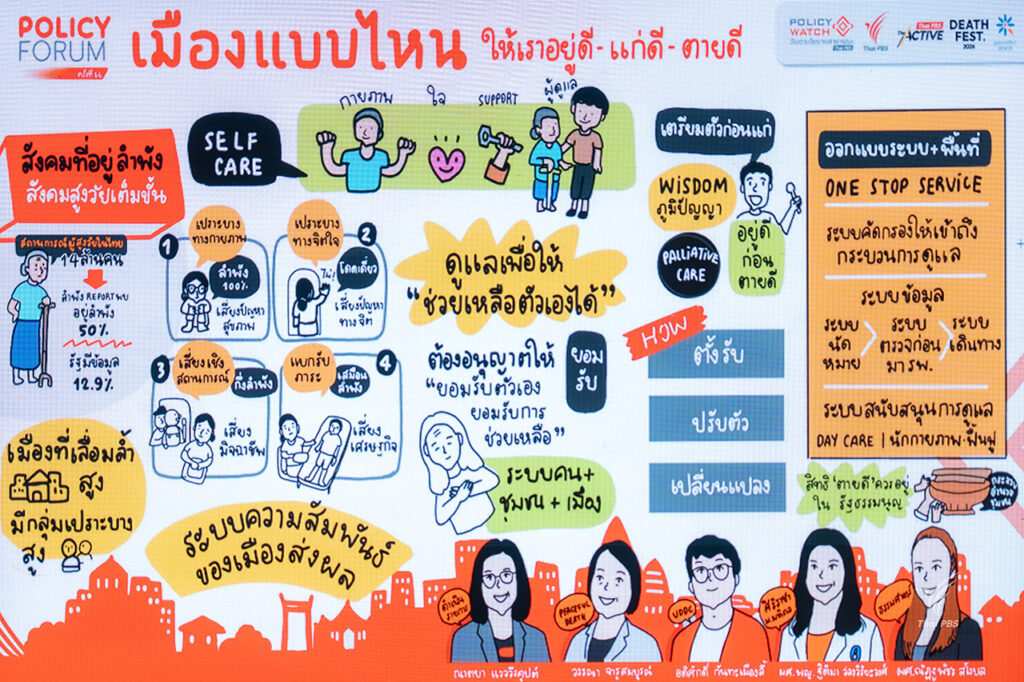 The Active ไทยพีบีเอส เปิดเวทีนโยบายสาธารณะ ชวนนักวิชาการ–แพทย์–นักออกแบบเมือง ออกแบบเมืองรองรับสังคมสูงวัย เสนอแนวคิด “ชุมชนกรุณา”, “ชรานคร” และระบบดูแลประคับประคอง เพื่อให้ “อยู่ดี แก่ดี ตายดี” มีศักดิ์ศรี วาระสุดท้ายต้องเป็นสิทธิของทุกคน