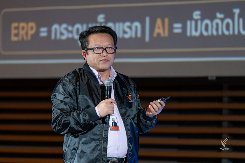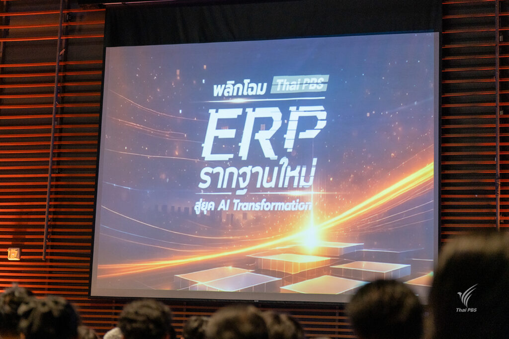 ดร.ปริญญ์ เฟื่องวุฒิ ผู้อำนวยการศูนย์พัฒนาระบบงานสารสนเทศ ส.ส.ท. ได้บรรยายในหัวข้อ “ติดกระดุมเม็ดแรกให้ถูก จาก Digital Foundation สู่ AI Transformation ของ Thai PBS” ชี้ให้เห็นว่าปัจจุบันไทยพีบีเอสกำลังแบกรับ “ต้นทุนแฝง” 4 ประการที่ฉุดรั้งประสิทธิภาพองค์กร ได้แก่ Data Silos ข้อมูลกระจัดกระจายในเกาะต่างๆ ไม่เชื่อมโยงกัน, ต้นทุนที่มองไม่เห็น จ่ายทุกวันไปกับเวลาที่สูญเสียและความผิดพลาด, ตัดสินใจช้า ผู้อำนวยการรอข้อมูลนานเพราะระบบปัจจุบันทำให้รอ และข้อมูลล่าช้า ความเสี่ยงจากการตัดสินใจบนฐานข้อมูลที่ผิดหรือไม่อัปเดต ซึ่งระบบ ERP จะเข้ามาแก้ไขปัญหาเหล่านี้ได้อย่างเป็นระบบ