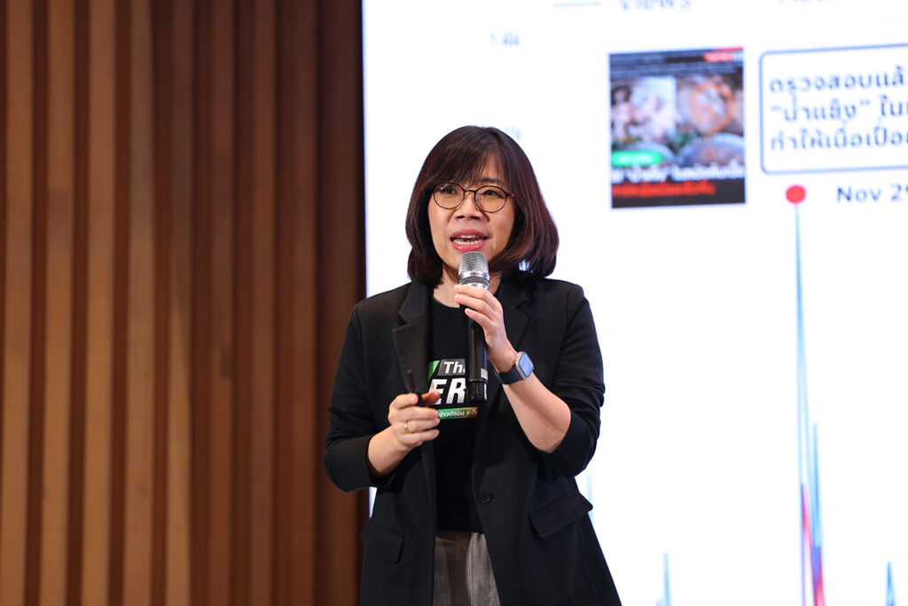 คุณกนกพร ประสิทธิ์ผล ผู้อำนวยการสำนักสื่อดิจิทัล ไทยพีบีเอส กล่าวว่า “นับตั้งแต่การก่อตั้ง Thai PBS Verify เราได้ดำเนินการตรวจสอบข้อเท็จจริงไปแล้วกว่า 400 ประเด็น ครอบคลุม 5 หมวดหมู่หลัก ซึ่งพบทั้งข้อมูลจริง ข้อมูลบิดเบือน และข่าวปลอม โดยเฉพาะอย่างยิ่งการแพร่ระบาดของข่าวปลอมที่สร้างโดยเทคโนโลยี AI ที่มีแนวโน้มเพิ่มสูงขึ้นในปัจจุบัน ก้าวต่อไปของ Thai PBS Verify มุ่งมั่นที่จะยกระดับมาตรฐานสู่สากลด้วยการเตรียมรับรองมาตรฐานจาก IFCN พร้อมวางแผนพัฒนาแพลตฟอร์มให้ใช้งานง่ายและเข้าถึงได้เร็วขึ้น นอกจากนี้ เรายังให้ความสำคัญกับการสร้างระบบนิเวศการรับสื่อที่ปลอดภัยผ่านการจัดอบรมทักษะ Fact Check ให้แก่ประชาชน เพราะในสภาวะวิกฤตที่ข่าวปลอมแพร่กระจายได้รวดเร็วกว่าข้อเท็จจริง ความแม่นยำและความระมัดระวังของผู้วิเคราะห์ข้อมูลจึงเป็นสิ่งสำคัญที่สุด หากเกิดความผิดพลาดเพียงเล็กน้อยย่อมส่งผลต่อความเชื่อมั่นของสาธารณชนทันที”