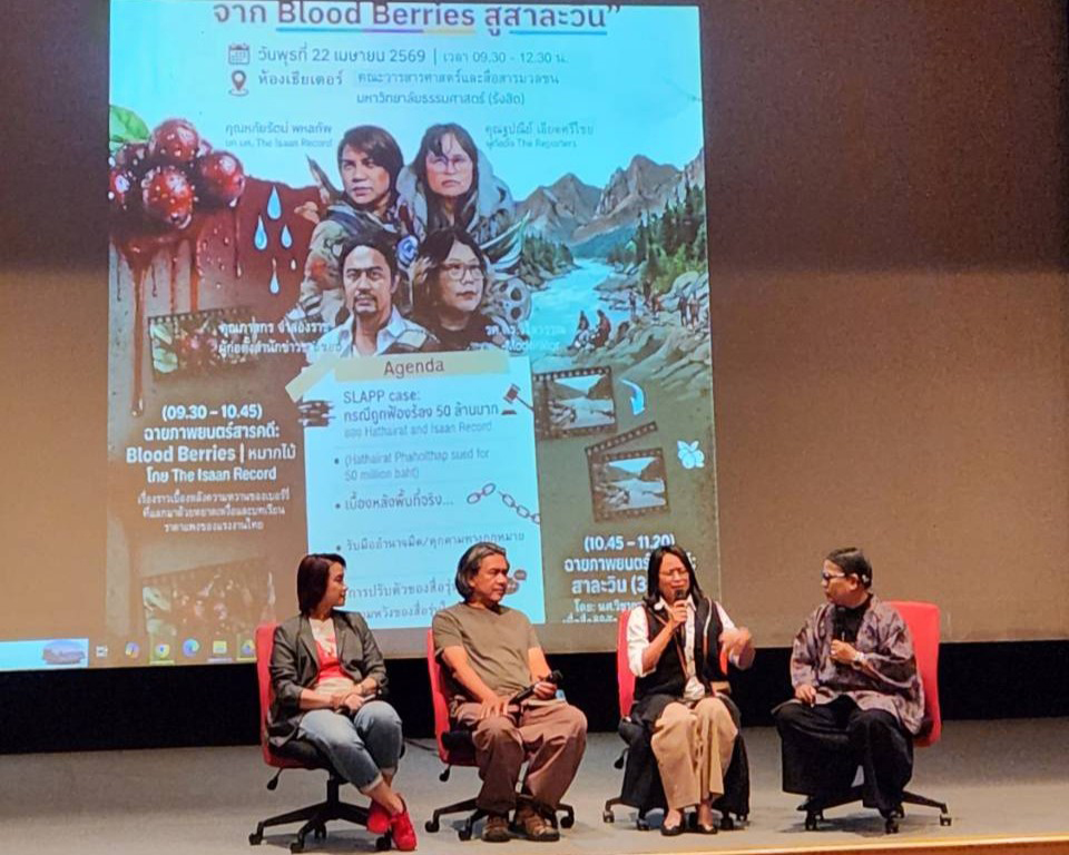 ไทยพีบีเอส โดยศูนย์สื่อสารและส่งเสริมการตลาดเพื่อสาธารณะ และ VIPA ร่วมกิจกรรมเสวนาเนื่องในวันเสรีภาพสื่อมวลชนโลก ในงาน “สื่อกับการสร้างการเปลี่ยนแปลง : จาก Blood Berries สู่สาละวิน” จัดขึ้นเมื่อวันที่ 22 เมษายน 2569 โดย คณะวารสารศาสตร์และสื่อสารมวลชน มหาวิทยาลัยธรรมศาสตร์ ร่วมกับ สำนักข่าวชายขอบ, The Isaan Record และ The Reporters ณ โรงภาพยนตร์ JC Cinema คณะวารสารศาสตร์และสื่อสารมวลชน มหาวิทยาลัยธรรมศาสตร์ ศูนย์รังสิต เพื่อเปิดพื้นที่แลกเปลี่ยนบทบาทของสื่อในการสร้างการเปลี่ยนแปลงทางสังคม