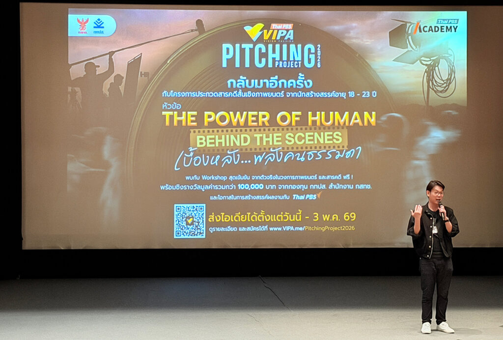ไทยพีบีเอสเดินหน้าสร้างแรงบันดาลใจให้กับคนรุ่นใหม่ที่มีใจรักในการผลิตสารคดี กับกิจกรรมโรดโชว์สุดเข้มข้นใน 2 สถาบันการศึกษาชั้นนำ เฟ้นหานักเล่าเรื่องหน้าใหม่ที่พร้อมก้าวสู่การทำงานเบื้องหลังผลิตภาพยนตร์สารคดีสั้นระดับมืออาชีพ ผ่านโครงการประกวดสารคดีสั้นเชิงภาพยนตร์ “VIPA Pitching Project 2026” เปิดรับสมัครแล้ววันนี้ – 3 พฤษภาคม 2569 ทาง www.VIPA.me/PitchingProject2026
