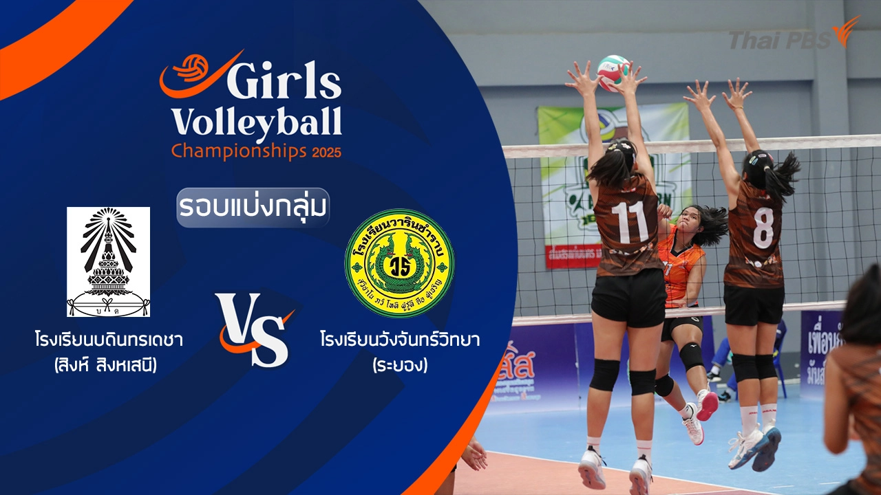 มาร่วมลุ้นร่วมเชียร์ในศึกรวมยอดทีมวอลเลย์บอลเยาวชนหญิงรุ่นอายุไม่เกิน 17 ปี รอบคัดเลือก กลุ่ม B ระหว่าง โรงเรียนบดินทรเดชา (สิงห์ สิงหเสนี) (กรุงเทพฯ) พบกับ โรงเรียนวังจันทร์วิทยา (ระยอง) ทีมไหนจะคว้าชัยในการแข่งขัน Thai PBS Girls Volleyball Championships 2025 ไทยพีบีเอสถ่ายทอดความมันจากโรงยิมเนเซียม สนามกีฬาจังหวัดกาญจนบุรี ในวันอาทิตย์ที่ 23 พ.ย. 68 เวลา 14.05 น. เป็นต้นไป