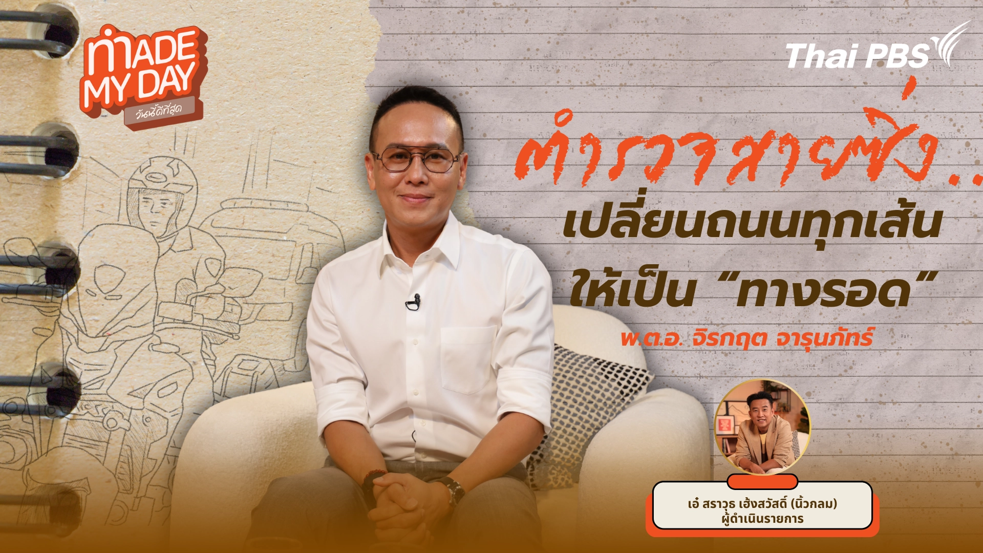 จากอดีตตำรวจสายสืบที่ต้องทำงานท่ามกลางคดีหนักและความกดดันที่ไม่มีวันหยุด สู่บทบาทตำรวจจราจรโครงการพระราชดำริ ที่ต้องแข่งกับเวลาเพื่อส่งต่อ "ชีวิต" ให้ถึงมือหมอ พ.ต.อ. จิรกฤต จารุนภัทร์ เล่าเรื่องความอดทนต่อความเจ็บใจ การยืนหยัดท่ามกลางความยากลำบากและหัวใจของตำรวจที่ถูกฝึกมาตั้งแต่วันแรกว่าพิทักษ์ รับใช้ประชาชน บทสนทนานี้ไม่ใช่แค่เรื่องหน้าที่ แต่คือการมองเห็นมนุษย์หลังเครื่องแบบ การดูแลใจตัวเอง เพื่อจะยังดูแลคนอื่นได้และแรงขับเงียบ ๆ ที่ทำให้ตำรวจคนหนึ่ง เลือกทำงานเพื่อประโยชน์สุขของประชาชนอย่างแท้จริง