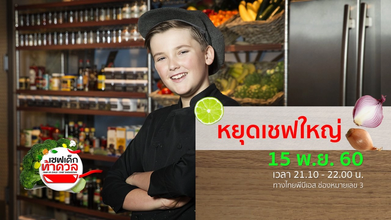 ติดตามชมรายการเชฟเด็ก..ท้าดวล MAN VS CHILD : CHEF SHOWDOWN ทุกวันพุธ เวลา 21.10 - 22.00 น. ทางไทยพีบีเอส หรือรับชมผ่านทีวีออนไลน์ทาง www.thaipbs.or.th/live