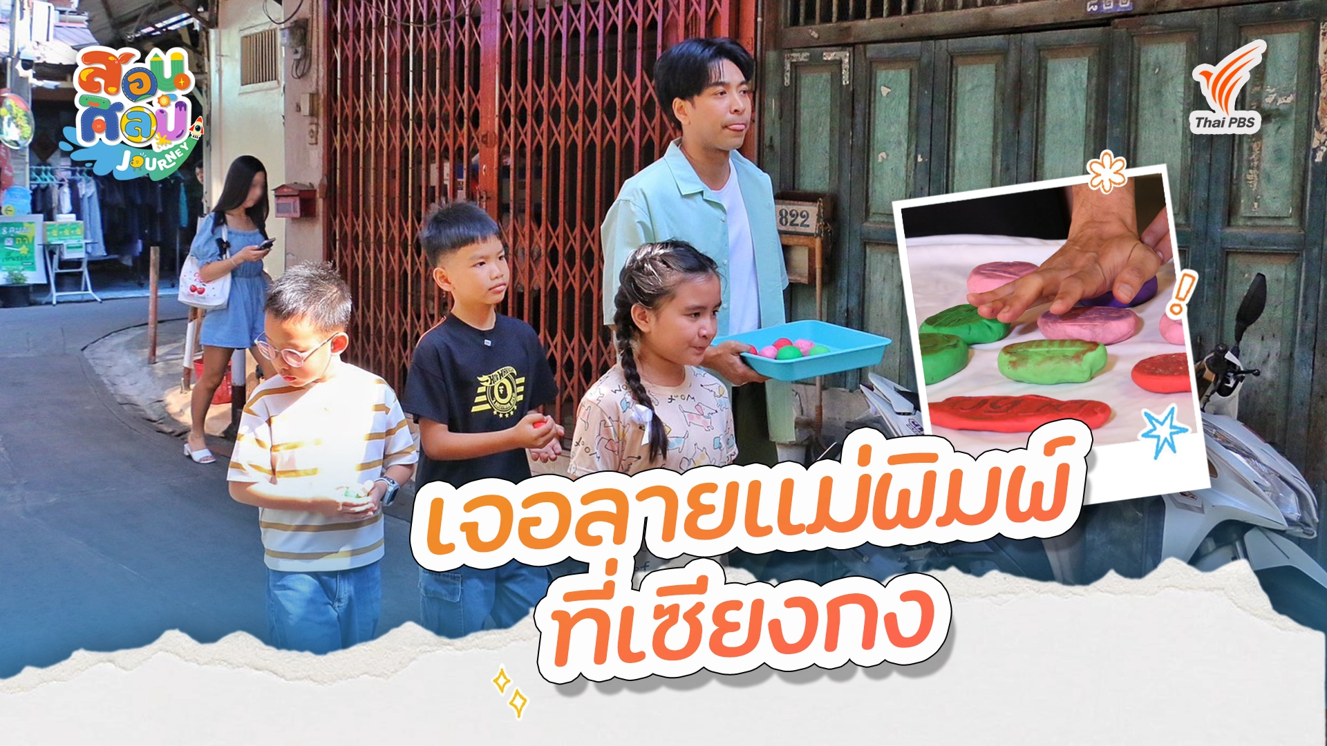 สอนศิลป์ Journey อาทิตย์นี้ พี่โจกับน้อง ๆ จะพาไปตะลุยย่านเซียงกง ตลาดน้อย เลยได้ไอเดียการทำศิลปะจากการปั๊มลวดลายต่าง ๆ ที่หาได้ในย่านนี้ แล้วรวบรวมเอามาเป็นลายปั๊มบนเสื้อสุดว้าว ที่มีตัวเดียวในโลก และไม่เหมือนใคร จะมีลายอะไรน่าสนใจ ไปสนุกพร้อมกับพี่โจและน้อง ๆ กันเลย