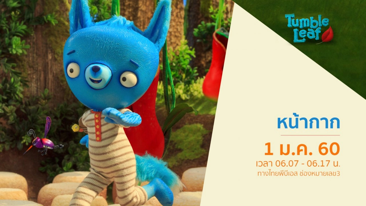 ติดตามชมการ์ตูน Tumble Leaf จิ้งจอกน้อยผจญภัย ในรายการคิดส์คลับ วันหยุด วันที่ 1 มกราคม 2561 เวลา 06.07 - 06.17 น. ทางไทยพีบีเอสทางไทยพีบีเอส หรือรับชมสดออนไลน์ทาง www.thaipbs.or.th/live