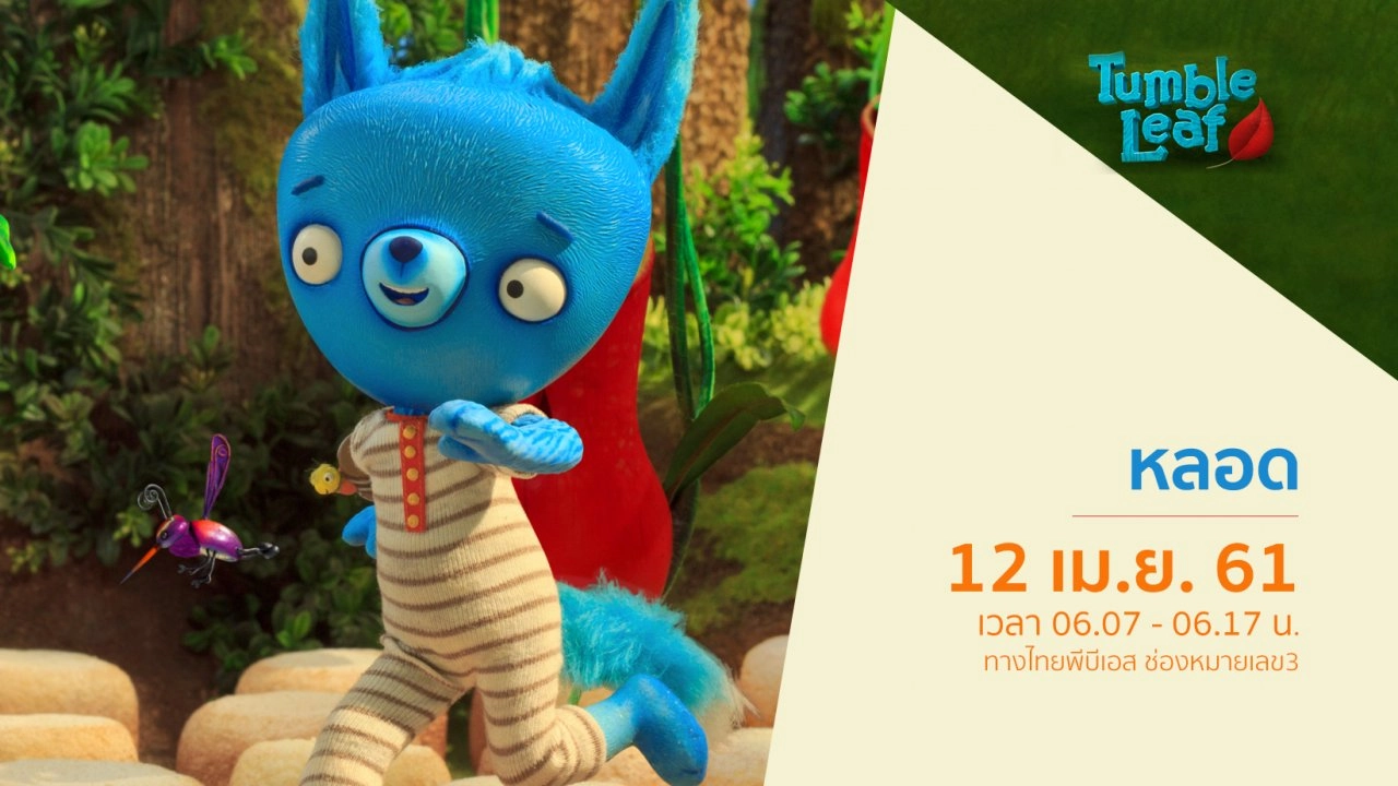 ติดตามชมการ์ตูน Tumble Leaf จิ้งจอกน้อยผจญภัย ในรายการคิดส์คลับ วันหยุด วันที่ 12 เมษายน 2561 เวลา 06.07 - 06.17 น. ทางไทยพีบีเอสทางไทยพีบีเอส หรือรับชมสดออนไลน์ทาง www.thaipbs.or.th/live