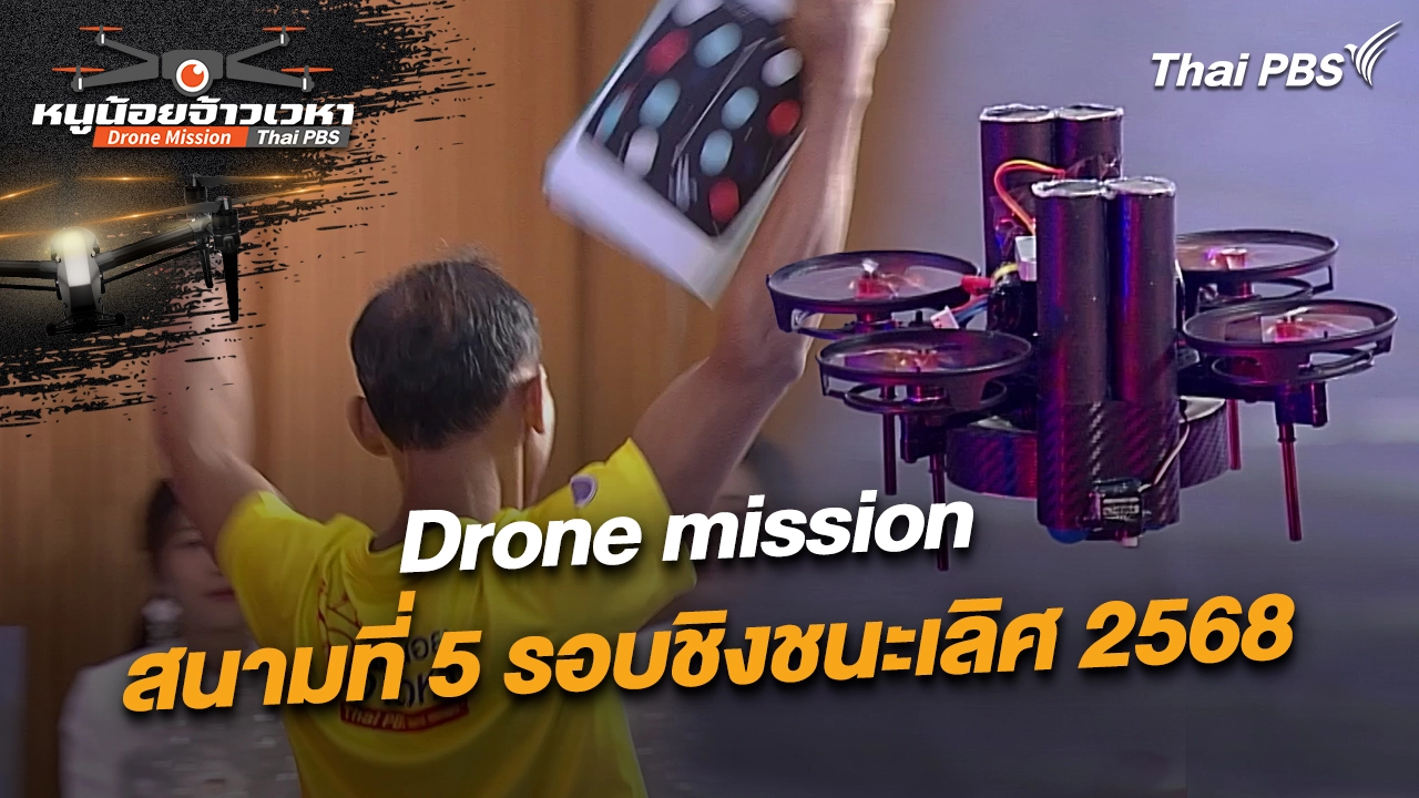 สิ้นสุดการรอคอยกับภารกิจส่งท้ายในการแข่งรอบสุดท้ายของเหล่าโปรแกรมเมอร์นักบินตัวเต็งแห่งปี Drone หนึ่งลำ พิชิต mission รอบชิงชนะเลิศในรายการแข่งขัน หนูน้อยจ้าวเวหา Thai PBS Drone mission ถ่ายทอดสดจากห้องประชุมจอมพลสฤษดิ์ ธนะรัชต์ อาคาร วช.1 สำนักงานการวิจัยแห่งชาติ กรุงเทพมหานคร