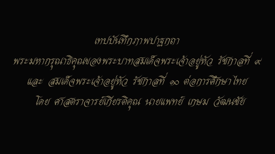 เทปบันทึกภาพ ปาฐกถา พระมหากรุณาธิคุณของพระบาทสมเด็จพระเจ้าอยู่หัว รัชกาลที่ ๙ และ สมเด็จพระเจ้าอยู่หัว รัชกาลที่ ๑๐ ต่อการศึกษาไทย โดย ศาสตราจารย์เกียรติคุณ นายแพทย์ เกษม วัฒนชัย