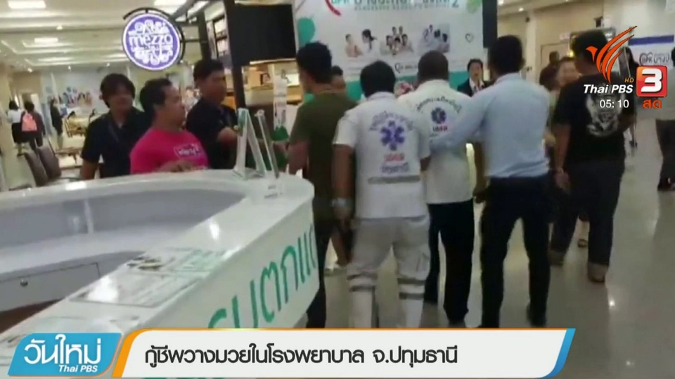 ติดตามชมข่าววันใหม่ ไทยพีบีเอส : กู้ชีพวางมวยในโรงพยาบาล จ.ปทุมธานี, พ่นข้อความบนโลมาลอดแยกพัทยากระทบท่องเที่ยว, แม่ยายยิงลูกเขย เหตุทำร้ายลูกสาว ออกอากาศ เวลา 05.00 - 07.00 น. ทางไทยพีบีเอส หรือรับชมสดผ่านทีวีออนไลน์ทาง www.thaipbs.or.th/Live