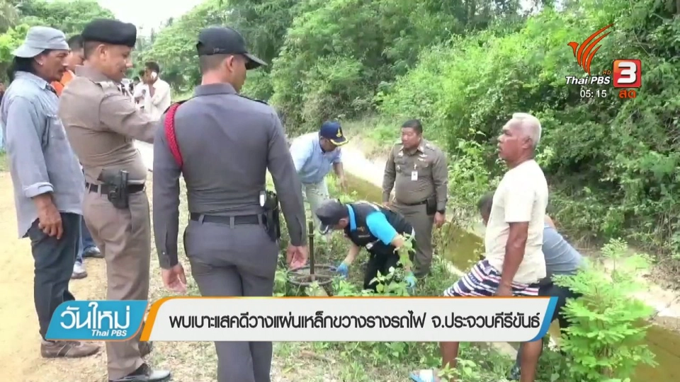 ติดตามชมข่าววันใหม่ ไทยพีบีเอส : พบเบาะแสคดีวางแผ่นเหล็กขวางรางรถไฟ จ.ประจวบคีรีขันธ์, คาดฉลามหัวบาตรกัดนักท่องเที่ยว, ฝนตกหนัก 2 ชั่วโมง น้ำท่วมขังตัวเมืองหัวหิน ออกอากาศ เวลา 05.00 - 07.00 น. ทางไทยพีบีเอส หรือรับชมสดผ่านทีวีออนไลน์ทาง www.thaipbs.or.th/Live