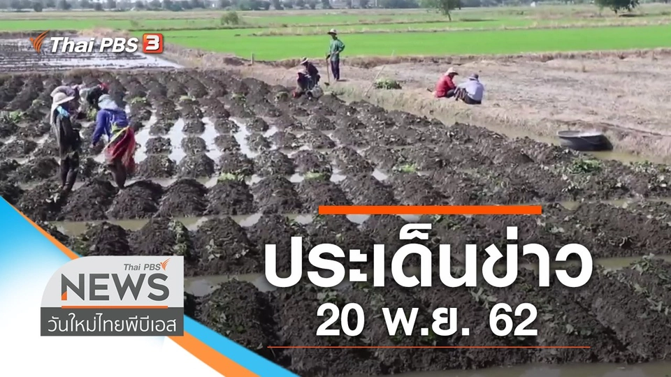 10:30จับตาสถานการณ์ประเด็นข่าว (20 พ.ย. 62)ติดตามชมจับตาสถานการณ์ : "ธนาธร" พร้อมยอมรับคำตัดสินของศาล รธน., นักแสดงหนุ่มเตรียมเข้าพบตำรวจ สน.ลาดกระบัง วันนี้ (20 พ.ย. 62), ชาวนาภาคอีสานนอนเฝ้าข้าวเปลือกป้องกันถูกขโมย เวลา 10.30 - 13.00 น. ทางไทยพีบีเอส หรือรับชมสดผ่านทีวีออนไลน์ทาง www.thaipbs.or.th/Liveชมย้อนหลัง2 ชั่วโมง 30 นาที