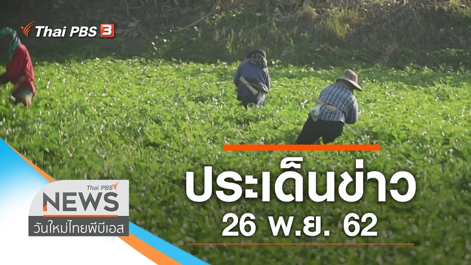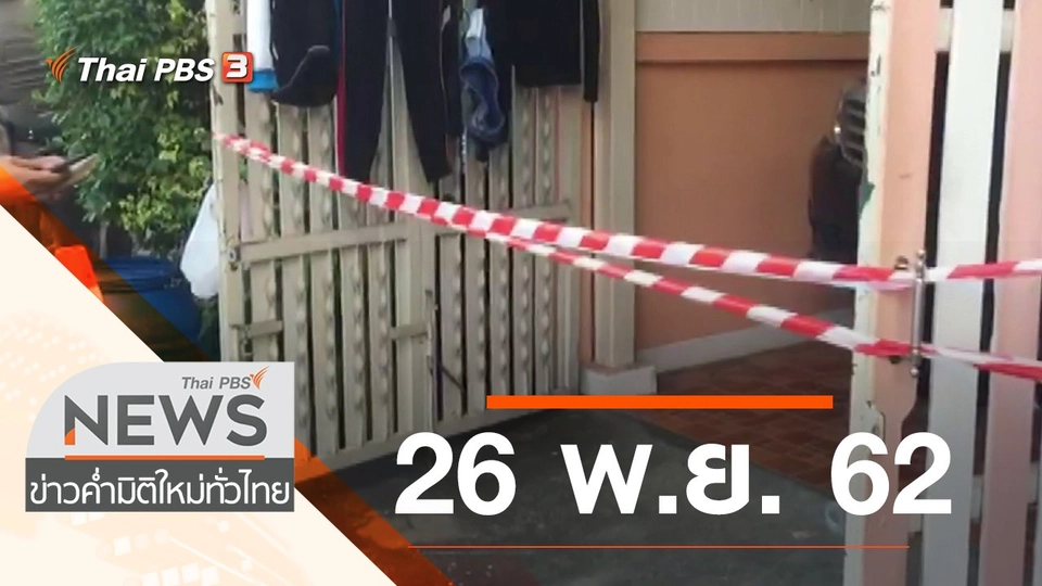 18:50ข่าวค่ำ มิติใหม่ทั่วไทยประเด็นข่าว (26 พ.ย. 62)พบกับประเด็นฆาตกรรมอำพรางศพ พิรุธหรือไม่เลื่อนแบน 3 สารเคมีเกษตร ? ติดตามรายการข่าวค่ำ มิติใหม่ทั่วไทย ออกอากาศวันจันทร์ - ศุกร์ เวลา 18.50 - 20.30 น. และ เสาร์ - อาทิตย์ 18.00 - 20.15 น. ทางไทยพีบีเอสชมย้อนหลัง1 ชั่วโมง 40 นาที
