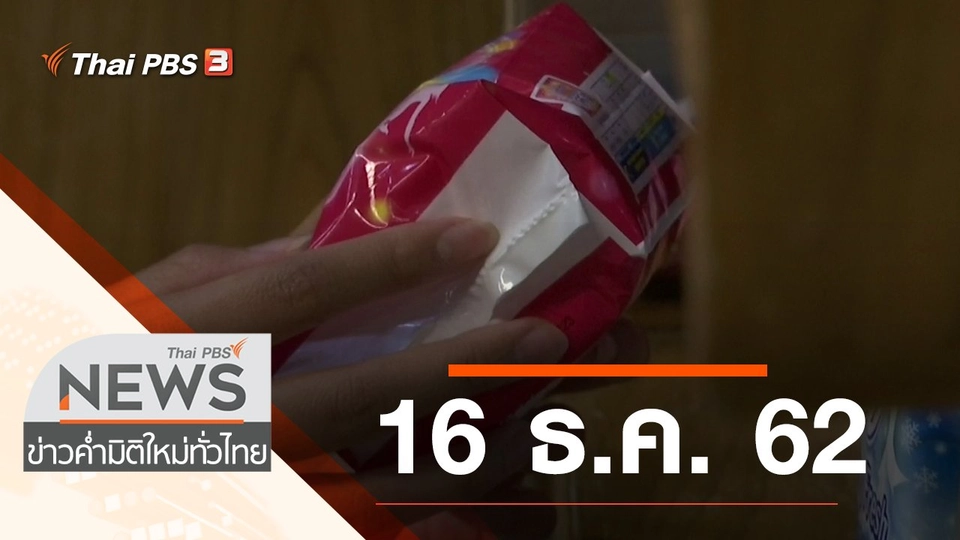 18:50ข่าวค่ำ มิติใหม่ทั่วไทยประเด็นข่าว (16 ธ.ค. 62)พบกับประเด็นเตรียมออกหมายเรียกจัดชุมนุมสกายวอล์กปฏิเสธเก็บภาษีผ้าอนามัย 40% ติดตามรายการข่าวค่ำ มิติใหม่ทั่วไทย ออกอากาศวันจันทร์ - ศุกร์ เวลา 18.50 - 20.30 น. และ เสาร์ - อาทิตย์ 18.00 - 20.15 น. ทางไทยพีบีเอสชมย้อนหลัง1 ชั่วโมง 40 นาที
