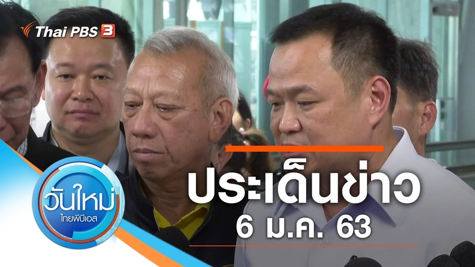 07:30วันใหม่ ไทยพีบีเอสประเด็นข่าว (6 ม.ค. 63)ติดตามชมข่าววันใหม่ ไทยพีบีเอส : สธ. ยังไม่พบผู้ป่วยโรคปอดอักเสบจากเชื้อไวรัสในจีน, บุกเดี่ยวชิงทอง หวังขายใช้หนี้พนันออนไลน์, ฆ่ายกครัว 4 ศพ เครียดปัญหาหนี้สิน ออกอากาศทุกวันจันทร์ - ศุกร์ เวลา 05.00 - 08.00 น. ทางไทยพีบีเอส หรือรับชมสดผ่านทีวีออนไลน์ทาง www.thaipbs.or.th/Liveชมย้อนหลัง30 นาที