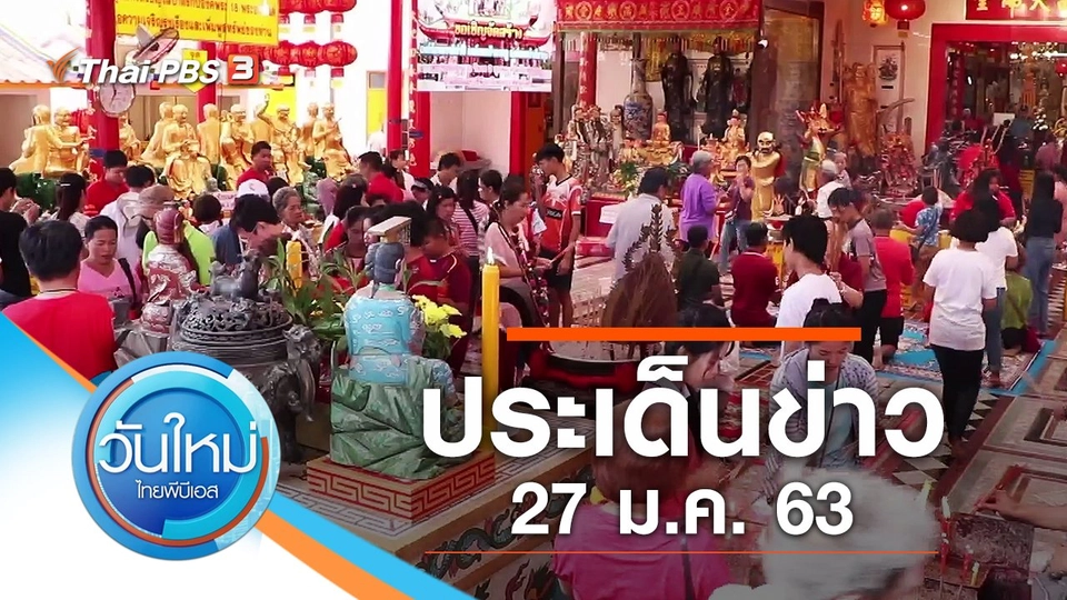 07:30วันใหม่ ไทยพีบีเอสประเด็นข่าว (27 ม.ค. 63)ติดตามชมข่าววันใหม่ ไทยพีบีเอส : ผู้ว่าฯ เพชรบูรณ์ วอนหยุดส่งต่อพบผู้ติดเชื้อไวรัสโคโรนา, อำเภอหัวหิน รณรงค์ป้องกันไวรัสโคโรนา, นักท่องเที่ยวจีนซื้อเหมาหน้ากากอนามัยกลับบ้าน ออกอากาศทุกวันจันทร์ - ศุกร์ เวลา 05.00 - 08.00 น. ทางไทยพีบีเอส หรือรับชมสดผ่านทีวีออนไลน์ทาง www.thaipbs.or.th/Liveชมย้อนหลัง30 นาที