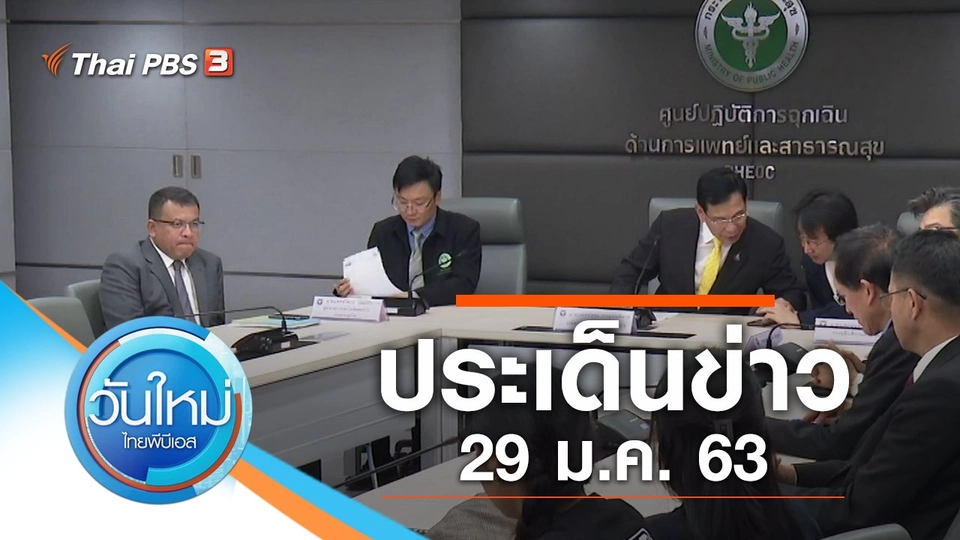07:30วันใหม่ ไทยพีบีเอสประเด็นข่าว (29 ม.ค. 63)ติดตามชมข่าววันใหม่ ไทยพีบีเอส : เตรียมประสานนักศึกษา 58 คนจากอู่ฮั่นกลับไทย, ไวรัสโคโรนากระทบท่องเที่ยว จ.ภูเก็ต, คุมเข้มด่านเฝ้าระวังการแพร่ระบาดเชื้อไวรัสโคโรนา ออกอากาศทุกวันจันทร์ - ศุกร์ เวลา 05.00 - 08.00 น. ทางไทยพีบีเอส หรือรับชมสดผ่านทีวีออนไลน์ทาง www.thaipbs.or.th/Liveชมย้อนหลัง30 นาที