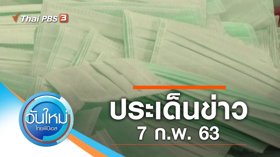 07:30วันใหม่ ไทยพีบีเอสประเด็นข่าว (7 ก.พ. 63)ติดตามชมข่าววันใหม่ ไทยพีบีเอส : ทำเจลแอลกอฮอล์ล้างมือแบบง่าย ๆ, หน้ากากอนามัยแบบผ้า แก้ปัญหาขาดตลาด ราคาสูง และเมืองพัทยาส่งกำลังให้ชาวจีนผ่านพ้นวิกฤตชมย้อนหลัง30 นาที