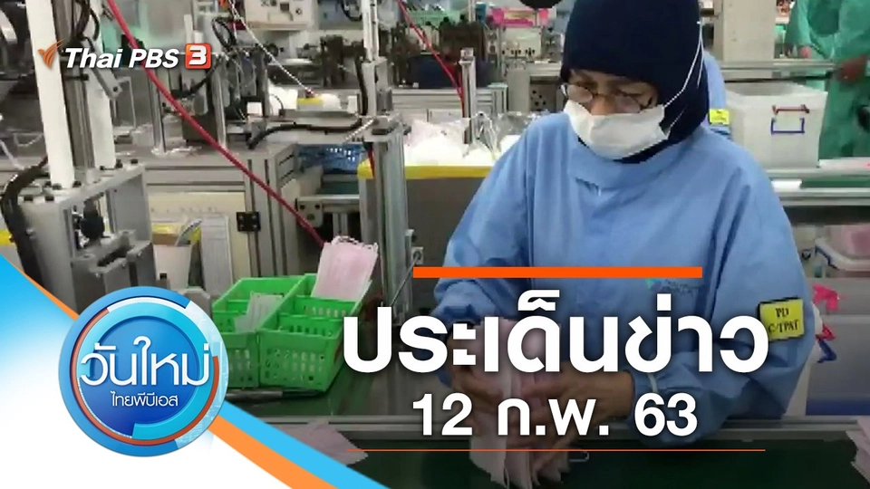 05:00วันใหม่ ไทยพีบีเอสประเด็นข่าว (12 ก.พ. 63)ติดตามชมข่าววันใหม่ ไทยพีบีเอส : ไทยพบชาวจีนติดเชื้อไวรัสโคโรนาคนที่ 33, องค์การอนามัยโลกตั้งชื่อใหม่ไวรัสจีน และมุมมองชาวต่างชาติ ต่อการระบาดของไวรัสโคโรนาในไทยชมย้อนหลัง1 ชั่วโมง 30 นาที