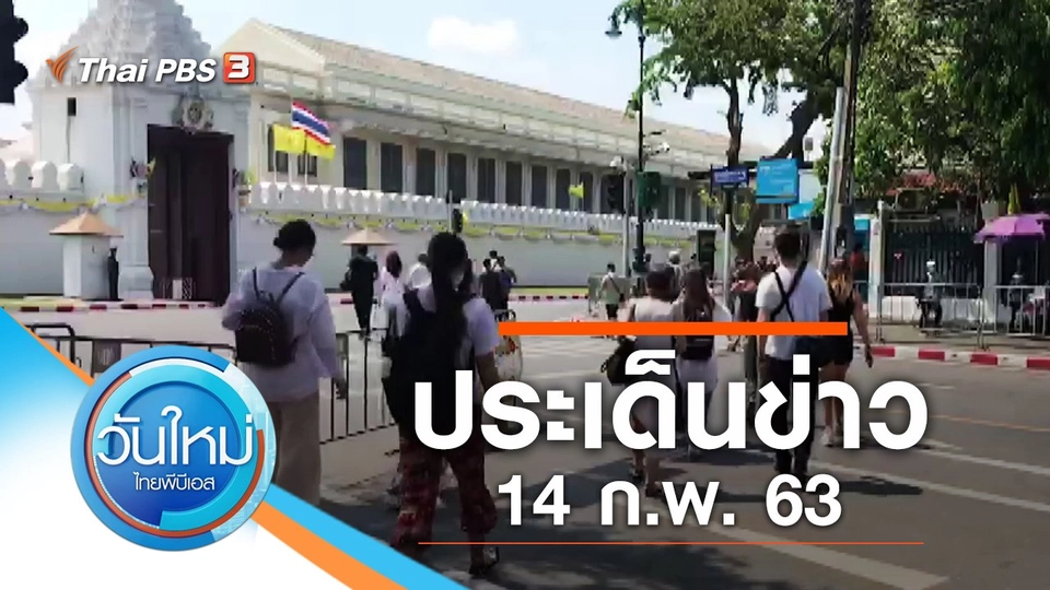07:30วันใหม่ ไทยพีบีเอสประเด็นข่าว (14 ก.พ. 63)ติดตามชมข่าววันใหม่ ไทยพีบีเอส : ร้องตรวจสอบที่ราชพัสดุทำบ้านจัดสรร จ.เชียงใหม่, แพทยสภา เล็งเอาผิดแพทย์ร่วมกระบวนการอุ้มบุญข้ามชาติ และปรับพฤติกรรมผู้ต้องขังก่อนพ้นโทษ ป้องกันกระทำผิดซ้ำชมย้อนหลัง30 นาที