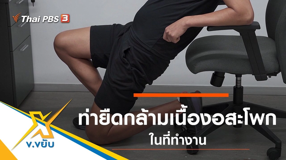 17:25ข.ขยับท่ายืดกล้ามเนื้องอสะโพกในที่ทำงานโคชเป้งขอเวลาเพียง 5 นาที มาออกกำลังกายเพื่อยืดกล้ามเนื้อ โดยใช้เก้าอี้ที่โต๊ะทำงานชมย้อนหลัง5 นาที