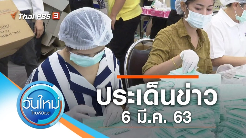 05:00วันใหม่ ไทยพีบีเอสประเด็นข่าว (6 มี.ค. 63)ติดตามชมข่าววันใหม่ ไทยพีบีเอส : ทิศทางการระบาดโควิด-19 หลังประกาศเขตโรคติดต่อนอกประเทศ, ภัยแล้งเกิดไฟป่าบนดอยอินทนนท์ จ.เชียงใหม่ และพบผู้ติดเชื้อเพิ่ม เดินทางจากอิตาลีและอิหร่านชมย้อนหลัง1 ชั่วโมง 30 นาที