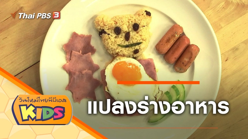06:30ติดลิขสิทธิ์รับชมย้อนหลังไม่ได้วันใหม่ไทยพีบีเอสคิดส์แปลงร่างอาหารพบกับตัวอย่างการตกแต่งอาหารจานอร่อย คุณพ่อคุณแม่จะได้นำไอเดียไปแปลงร่างอาหารให้ดึงดูดเด็ก ๆ