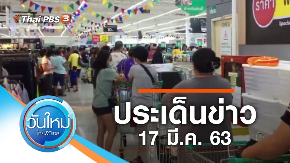 07:30วันใหม่ ไทยพีบีเอสประเด็นข่าว (17 มี.ค. 63)พบกับประเด็นข่าว : นายกฯ ตรวจเยี่ยมโรงพยาบาลราชวิถี, ทร.เตรียมส่ง 240 แรงงานไทยกลับภูมิลำเนา และ พบซากวาฬขนาดใหญ่ตายอืดกลางอันดามันชมย้อนหลัง30 นาที