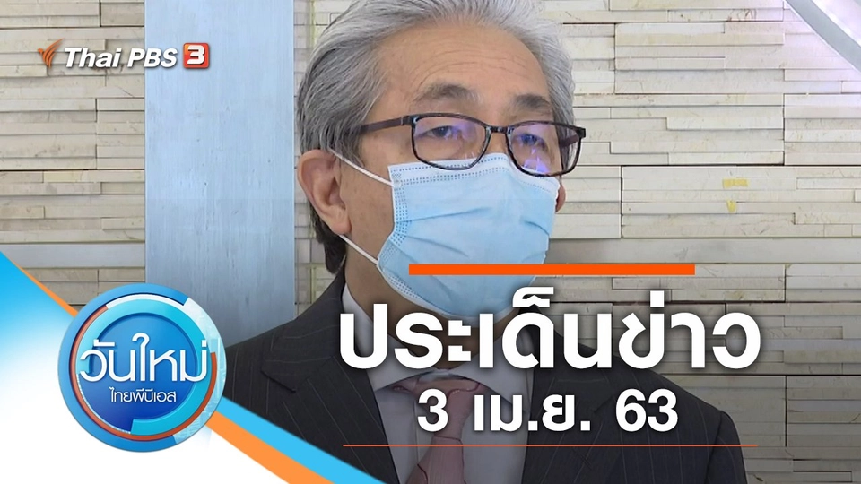 07:30วันใหม่ ไทยพีบีเอสประเด็นข่าว (3 เม.ย. 63)พบกับประเด็นข่าว : ปกครองอุดรฯ จับกลุ่มตั้งวงดื่มเหล้าไม่สนโควิด-19, "กาฬสินธุ์" พบผู้ติดเชื้อโควิดดื่มน้ำแก้วเดียวกัน และ พนง.รถไฟเสียชีวิตโควิด-19 รายแรกปทุมธานีชมย้อนหลัง30 นาที