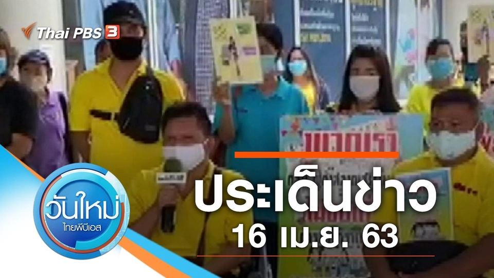 07:30วันใหม่ ไทยพีบีเอสประเด็นข่าว (16 เม.ย. 63)พบกับประเด็นข่าว : แห่ขายทอง-ร้านรับซื้อขาดสภาพคล่อง, รพ.รือเสาะ กักตัวบุคลากรทางการแพทย์ 28 คน และ ขายปลานิล-กุ้งก้ามกรามราคาถูกสู้โควิด-19ชมย้อนหลัง30 นาที