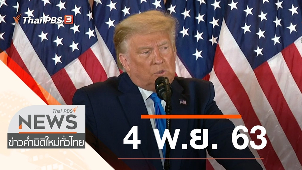 22:15ที่นี่ Thai PBSประเด็นข่าว (4 พ.ย. 63)พบกับประเด็นโดนัลด์ ทรัมป์ ชิงประกาศชัยชนะก่อนการนับคะแนนยุติแกนนำการชุมนุมประกาศไม่ร่วมคณะกรรมการสมานฉันท์ชมย้อนหลัง45 นาที