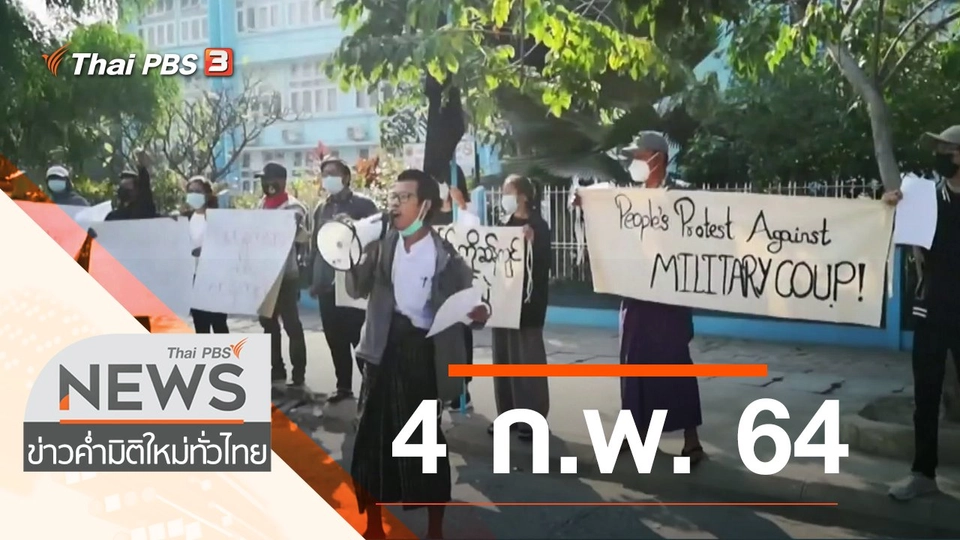 21:45ที่นี่ Thai PBSประเด็นข่าว (4 ก.พ. 64)พบกับประเด็นชาวเมียนมาชุมนุมต่อต้านรัฐประหารหน้าสถานทูตเมียนมาบทบาทกองทัพเมียนมากับการเมืองชมย้อนหลัง45 นาที