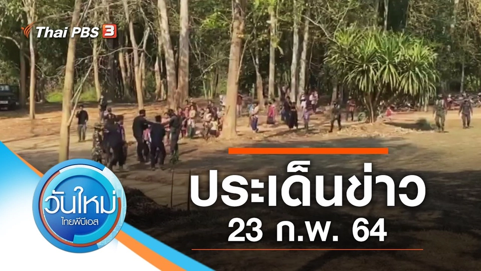 05:00วันใหม่ ไทยพีบีเอสประเด็นข่าว (23 ก.พ. 64)พบกับประเด็น : อพยพชาวบ้านบางกลอยบุกรุกป่าแก่งกระจาน, จับนักธุรกิจไทยกักโควิดชายแดนกัมพูชา และติดตามหญิงชุดดำจี้ชิงเงิน ธ.ก.ส.ประจวบฯชมย้อนหลัง3 ชั่วโมง