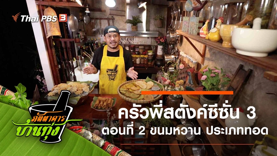 16:05ภัตตาคารบ้านทุ่งครัวพี่สตังค์ซีซั่น 3 ชีวิตหวาน ๆ กับภัตตาคารบ้านทุ่ง ตอนที่ 2 ขนมหวาน ประเภททอดพี่สตังค์พาเข้าครัวไปทอดขนมหลากสีสัน ทั้งขนมที่คุ้นหน้าคุ้นตา และขนมโบราณหาทานยาก ไม่ว่าจะเป็น “ขนมฝักบัว” “ขนมโพรงแสม” และ “ขนมดอกจอก” พร้อมบอกขั้นตอนและเคล็ดลับดี ๆ แบบไม่มีกั๊ก จะอร่อยไม่พักแค่ไหน ? ต้องติดตามชิม !!!ชมย้อนหลัง25 นาที