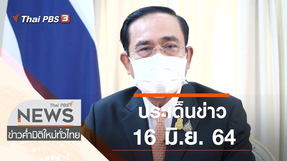 18:50ข่าวค่ำ มิติใหม่ทั่วไทยประเด็นข่าว (16 มิ.ย. 64)พบกับประเด็นนายกฯ ตั้งเป้าเปิดประเทศใน 120 วันกรมวิทย์ฯ เตือนสายพันธุ์ "เดลตา" ระบาดใน 3 เดือนชมย้อนหลัง1 ชั่วโมง 40 นาที