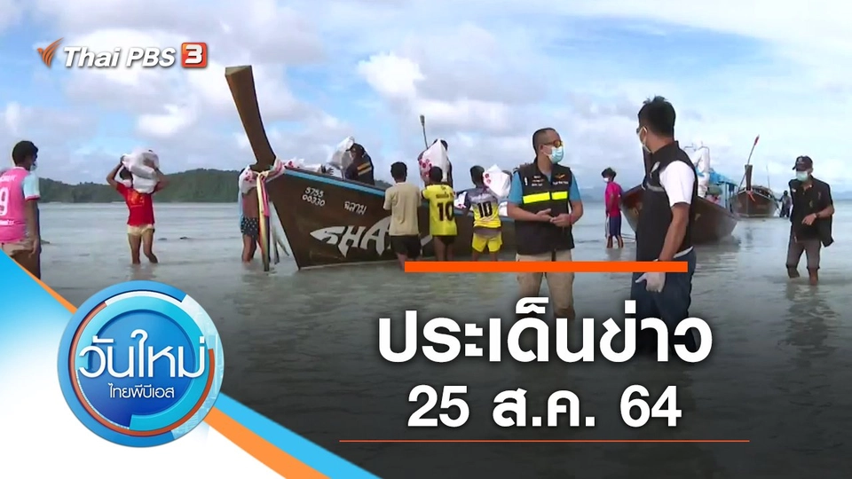 05:00วันใหม่ ไทยพีบีเอสประเด็นข่าว (25 ส.ค. 64)พบกับประเด็น : รอง ผบ. ตร.เร่งตรวจสอบคลิปตำรวจรีดเงิน, ชาวบ้านบนเกาะหลีเป๊ะ ติดโควิด 200 คน และพบเดลตาสายพันธุ์ย่อยในไทยชมย้อนหลัง3 ชั่วโมง