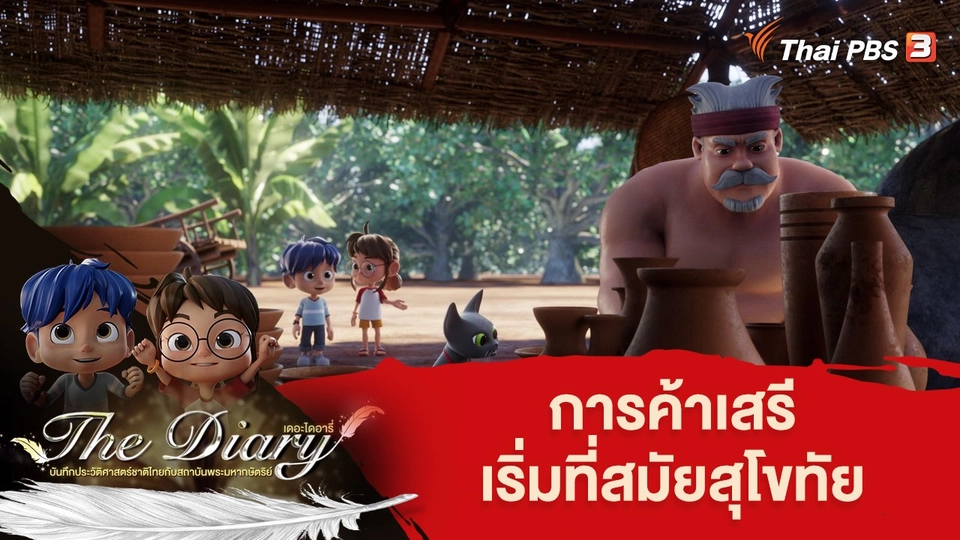 08:00การ์ตูนแอนิเมชัน เดอะไดอารี่ บันทึกประวัติศาสตร์ชาติไทยกับสถาบันพระมหากษัตริย์การค้าเสรีเริ่มที่สมัยสุโขทัยพบกับผจญภัยครั้งใหญ่ ย้อนเวลาสู่อดีตเพื่อค้นหาคำตอบเกี่ยวกับการค้าเสรีเริ่มที่สมัยสุโขทัย ในรัชสมัยพ่อขุนรามคำแหงมหาราชชมย้อนหลัง5 นาที