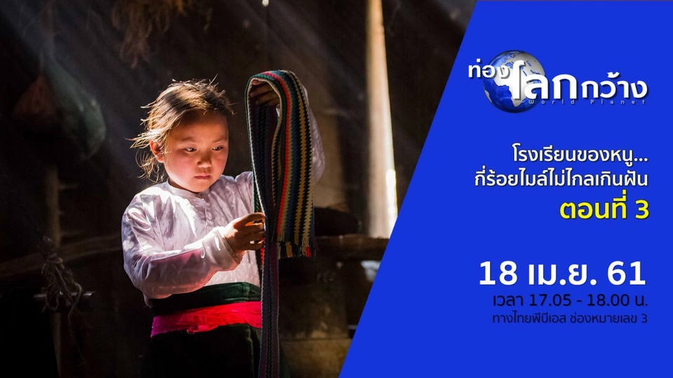 18:00ติดลิขสิทธิ์รับชมย้อนหลังไม่ได้ท่องโลกกว้างโรงเรียนของหนู...กี่ร้อยไมล์ไม่ไกลเกินฝัน ตอนที่ 3ตามไปดูเรื่องราวนักเรียนผู้หญิงในอินเดีย ในรายการท่องโลกกว้าง วันที่ 18 เม.ย.นี้ เวลา 17.05 น. ทางไทยพีบีเอส