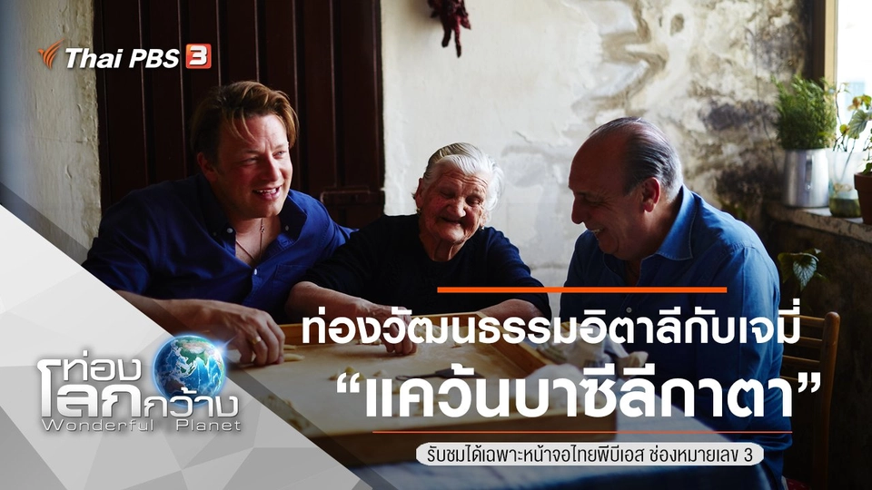 18:00ติดลิขสิทธิ์รับชมย้อนหลังไม่ได้ท่องโลกกว้างท่องวัฒนธรรมอิตาลีกับเจมี่ ตอน แคว้นบาซีลีกาตาเดินทางไปยังแคว้นบาซีลีกาตา ไปดูวิธีทำเส้นพาสตา จะมีเทคนิคอะไรบ้าง