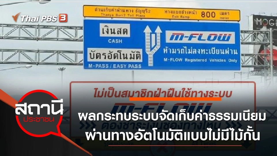 14:05สถานีประชาชนผลกระทบระบบจัดเก็บค่าธรรมเนียมผ่านทางอัตโนมัติแบบไม่มีไม้กั้น (M-Flow)หลังกรมทางหลวงเริ่มใช้ระบบการ "จัดเก็บค่าผ่านทาง" ด้วยกล้องตรวจบันทึกภาพป้ายทะเบียนรถ ด้วยเทคโนโลยี AI แบบไม่มีไม้กั้น หรือ M-Flow แต่กลับพบปัญหารถติดหนัก และมีคนขับเข้าช่องผ่านทางแบบไม่ได้ลงทะเบียนตามหลักเกณฑ์ชมย้อนหลัง55 นาที