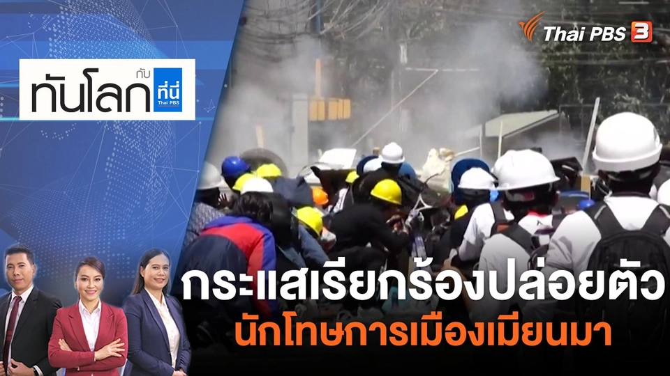 21:30ทันโลก กับ ที่นี่ Thai PBSกระแสเรียกร้องปล่อยตัวนักโทษการเมืองเมียนมา | ทันโลก กับ ที่นี่ Thai PBS | 29 เม.ย. 65พบกับประเด็นกระแสเรียกร้องปล่อยตัวนักโทษการเมืองเมียนมารัสเซียโจมตีเคียฟ เย้ยหยันเลขาฯ สหประชาชาติชมย้อนหลัง45 นาที