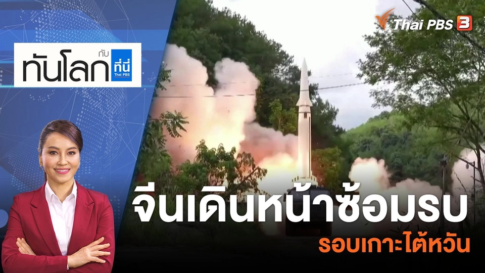 พบกับประเด็นจีนยังไม่ประกาศยุติซ้อมรบรอบไต้หวันน้ำป่าวังหลวง จ.เลย ทะลักท่วมบ้านเรือนประชาชนเตรียมแจ้งข้อหาเพิ่มเจ้าของเมาท์เทนบีผับและอื่น ๆผังรายการ Thai PBS