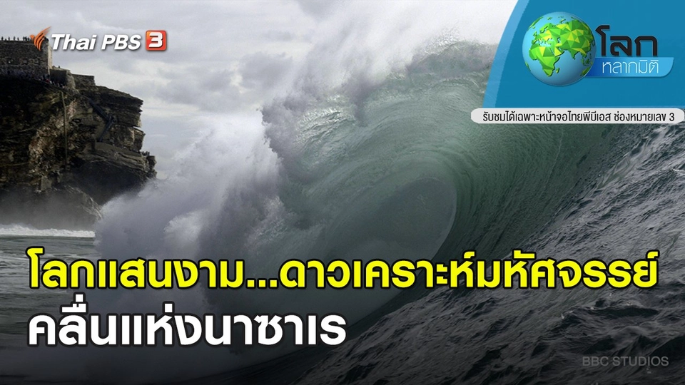22:30ติดลิขสิทธิ์รับชมย้อนหลังไม่ได้โลกหลากมิติโลกแสนงาม...ดาวเคราะห์มหัศจรรย์ ตอน คลื่นแห่งนาซาเรคลื่นลูกใหญ่ยักษ์ที่ชายหาดนาซาเรในประเทศโปรตุเกส ซึ่งมีความสูงราวตึก 6 ชั้น มีความเร็วร่วม 50 กิโลเมตรต่อชั่วโมง กับพายุทอร์นาโดในสหรัฐอเมริกา ที่หมุนเร็วถึง 400 กิโลเมตรต่อชั่วโมง มีกระบวนการก่อตัวที่คล้ายคลึงกันอย่างยิ่ง