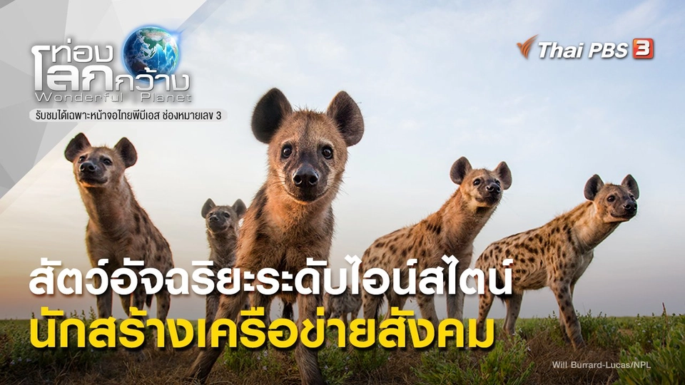 18:00ติดลิขสิทธิ์รับชมย้อนหลังไม่ได้ท่องโลกกว้างสัตว์อัจฉริยะระดับไอน์สไตน์ ตอน นักสร้างเครือข่ายสังคมChris Packham พาไปดูความฉลาดทางสังคมในอาณาจักรสัตว์ และเข้าใจว่าเหตุใดสำหรับสัตว์แล้ว การรวมกลุ่มหมายถึงความฉลาด เขาจะไปดูสิงโตรวมฝูงล่า โดยแต่ละตัวจะมีตำแหน่งเฉพาะตัว