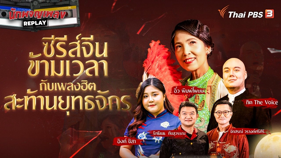 22:05นักผจญเพลง REPLAYซีรีส์จีนข้ามเวลา กับเพลงฮิตสะท้านยุทธจักรย้อนความทรงจำกับภาพยนตร์, ซีรีส์, ละครจีน ไต้หวัน และฮ่องกง สุดฮิตที่คุณยังคิดถึง ไปกับ จักสรณ์ วรางค์ศรีศิริ และ เจ้าของแฟนเพจเก้ากระบี่เดียวดาย และย้อนวันวานปกับบทเพลงประกอบที่ฮิตตลอดกาลชมย้อนหลัง55 นาที