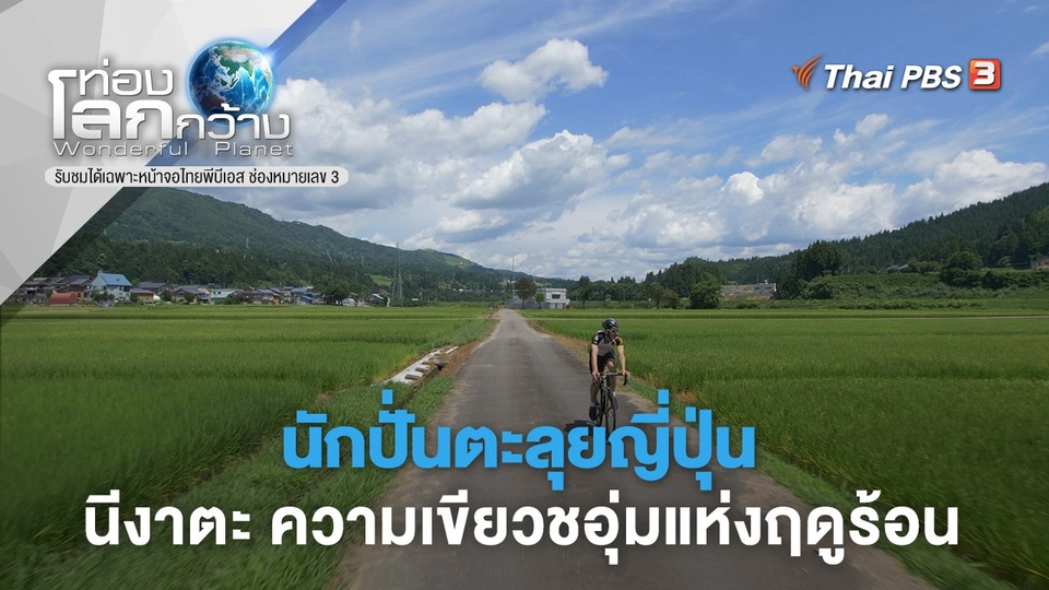 18:00ติดลิขสิทธิ์รับชมย้อนหลังไม่ได้ท่องโลกกว้างนักปั่นตะลุยญี่ปุ่น ตอน นีงาตะ ความเขียวชอุ่มแห่งฤดูร้อนในการปั่นจักรยาน 150 กิโลเมตร ไมเคิล ไรส์ นักแข่งไตรกีฬาออกสำรวจหมู่เกาะโอกิที่อยู่ห่างไกล อุดมไปด้วยผืนป่าและรายล้อมด้วยน้ำทะเลใส เขาตามหาผักมาทำบาร์บีคิวกับชาวเกาะ ลงเล่นน้ำที่ชายหาด ทำข้าวปั้นกับเจ้าของเกสต์เฮาส์