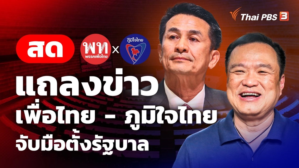 20:30ตอบโจทย์ดีลมินต์ช็อก "เพื่อไทย-ภูมิใจไทย" จับมือ "ตั้งรัฐบาล"ร่วมสนทนาประเด็นการจับมือจัดตั้งรัฐบาลระหว่างพรรคเพื่อไทยกับพรรคภูมิใจไทย การหาเสียงสนับสนุนโหวตนายกฯ และแนวโน้มการเมืองไทยชมย้อนหลัง30 นาที